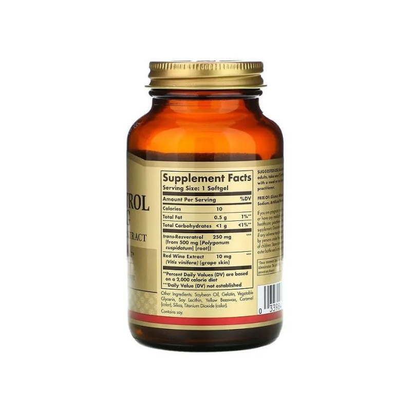 Високоякісна добавка, яка забезпечує потужний антиоксидантний захист і підтримку клітинного здоров’я. Ресвератрол — це природна поліфенольна сполука, що міститься в шкірці червоного винограду, яка відома своїми омолоджувальними властивостями. Продукт сприяє зміцненню серцево-судинної системи, підтримці нормального кровообігу, зменшенню запальних процесів і уповільненню клітинного старіння. Resveratrol 250 мг Solgar рекомендований для людей, які прагнуть зберегти молодість, покращити роботу серця, захистити мозок і підтримати здоровий обмін речовин. Завдяки високій концентрації активної речовини, капсули забезпечують ефективну дію навіть при низькому дозуванні. Продукт виготовлений з використанням високоякісних інгредієнтів без глютену, штучних барвників, консервантів чи ароматизаторів. Підходить для вегетаріанців.