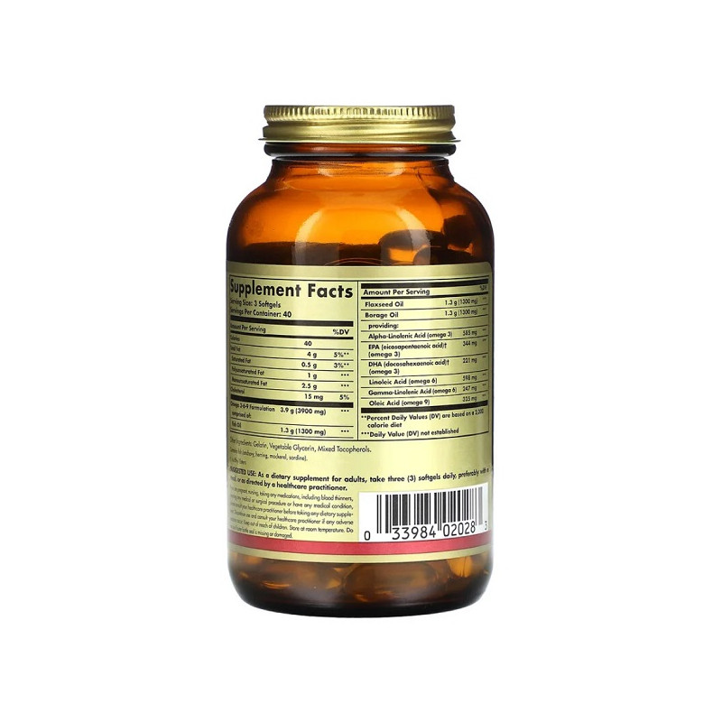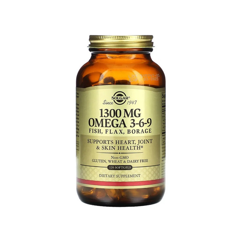 Високоякісна добавка, яка забезпечує повноцінну підтримку серця, суглобів, імунної системи та здоров’я шкіри завдяки потужному комплексу омега-3, омега-6 і омега-9 жирних кислот. Продукт ідеально підходить для тривалого прийому, оскільки містить подвійну кількість капсул — 120 шт., що забезпечує безперервне надходження корисних жирів в організм. У складі — лише натуральні джерела жирних кислот: риб’ячий жир, лляна олія та олія огірочника (борець), які разом сприяють покращенню загального самопочуття та зниженню запальних процесів.