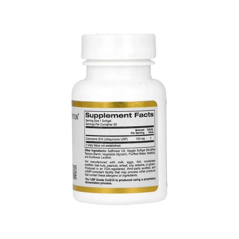 Формула від California Gold Nutrition виготовлена без глютену, ГМО та сої, та підходить для вегетаріанців. Вона містить високоякісний CoQ10, отриманий за сучасними технологіями ферментації для максимальної біодоступності.