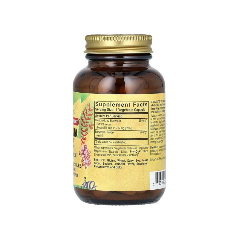 Boswellia Resin Extract Solgar – це надійна рослинна підтримка для збереження рухливості, гнучкості та зниження запалення без шкоди для шлунка.