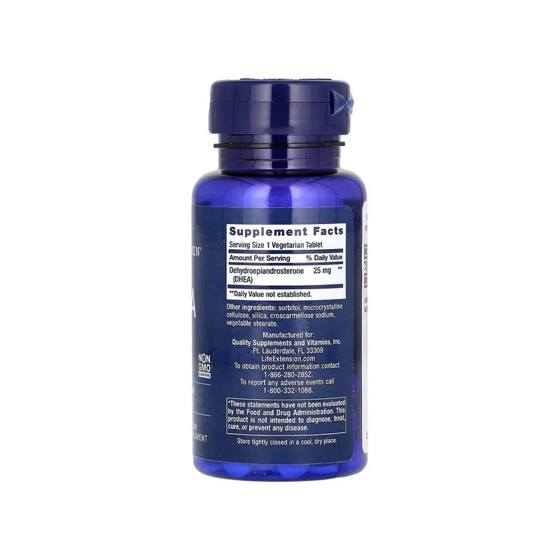 DHEA 25мг Life Extension — це щоденна підтримка гормональної рівноваги, енергії та молодості у зручному форматі веганських таблеток.