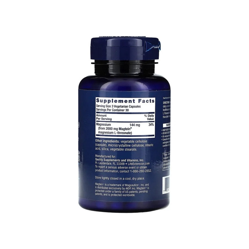 | Магній (з 2000 мг L-треонату магнію Magtein®) | 144 мг | 34 % |