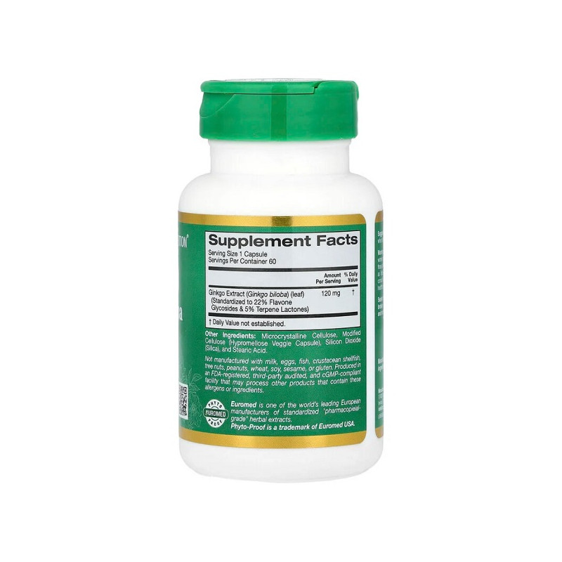 Стандартизований екстракт листя гінкго білоба, створений для підтримки мозкового кровообігу, когнітивної функції та загального тонусу нервової системи. Кожна вегетаріанська капсула містить 120 мг чистого екстракту гінкго білоба, стандартизованого до 24% флавонглікозидів та 6% терпенлактонів — активних речовин, що забезпечують клінічно доведену ефективність. Цей природний засіб сприяє поліпшенню пам’яті, концентрації, ментальної ясності та може допомагати в боротьбі з віковими змінами когнітивних здібностей. Ginkgo також відомий своїм позитивним впливом на кровообіг, особливо в головному мозку та кінцівках, зменшуючи симптоми холодних рук і ніг. Продукт виготовлено без ГМО, глютену, сої та штучних домішок, він підходить для вегетаріанців. Це чудове рішення для студентів, офісних працівників, людей літнього віку або всіх, хто прагне підтримати розумову продуктивність.