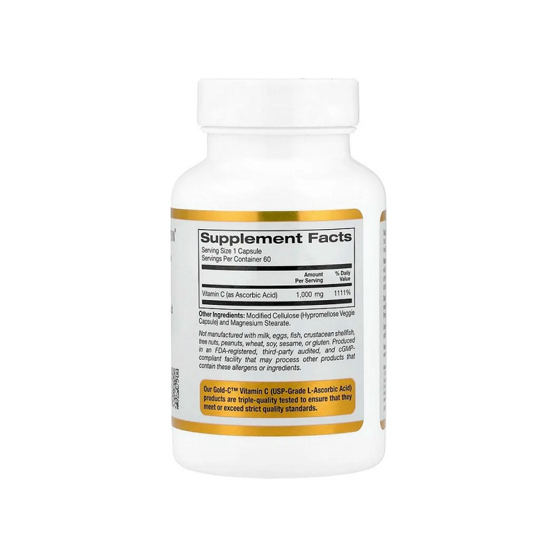 Gold Vitamin C 1000мг California Gold Nutrition — надійний щоденний захист для вашого імунітету та джерело антиоксидантної підтримки.