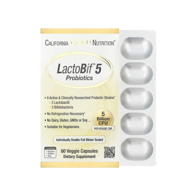 Високоякісна пробіотична добавка, що містить 5 мільярдів КУО живих корисних бактерій у кожній капсулі. Формула включає 8 ретельно підібраних штамів лактобактерій та біфідобактерій, які підтримують баланс мікрофлори кишечника, зміцнюють імунітет та сприяють здоровому травленню. Пробіотики захищені унікальною технологією захисту від шлункової кислоти, що забезпечує їх доставку безпосередньо в кишечник, де вони найбільш ефективні. Продукт не містить ГМО, глютену, сої, молочних продуктів чи штучних домішок, що робить його ідеальним для людей із чутливим травленням. LactoBif рекомендовано під час або після прийому антибіотиків, а також у випадках розладу травлення або під час подорожей. Він підходить для щоденного вживання як дорослими, так і дітьми від 4 років. Капсули вегетаріанські, легкі в ковтанні та зручні у використанні.