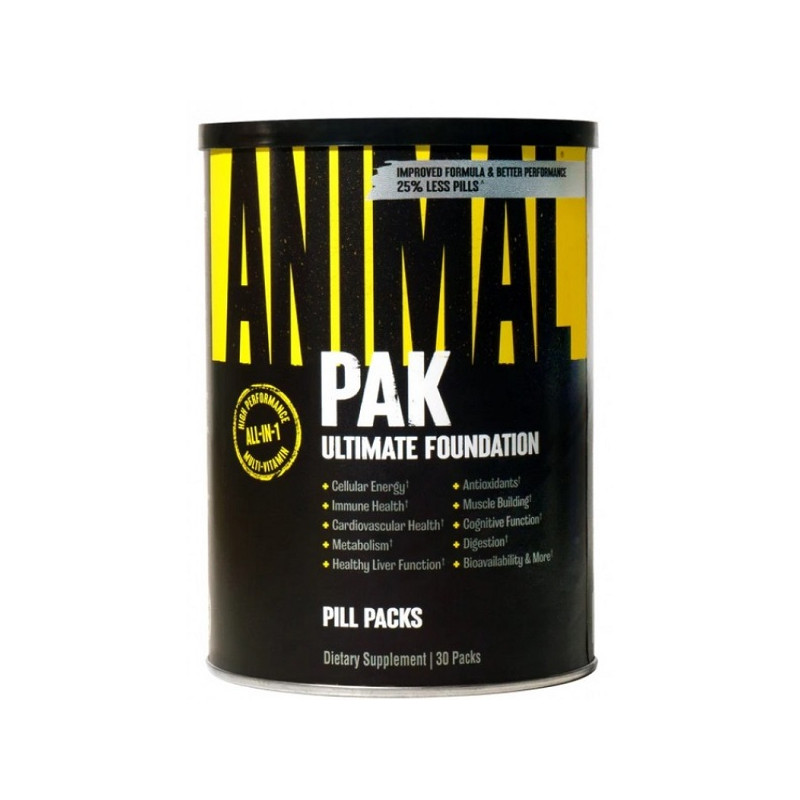 Високоякісна добавка, яка забезпечує комплексну підтримку організму завдяки потужній формулі з вітамінами, мінералами, амінокислотами, ферментами та антиоксидантами. Animal Pak Universal Nutrition (EU) створений спеціально для спортсменів, які мають підвищене фізичне навантаження і потребують максимальної підтримки організму. Продукт сприяє оптимізації роботи внутрішніх органів, покращенню витривалості, відновленню після тренувань та зміцненню імунітету.