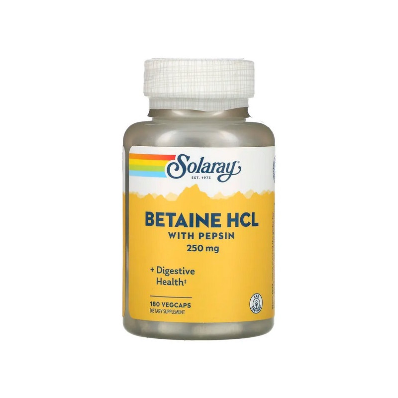 Betaine HCL with Pepsin Solaray – це надійний помічник для здорового травлення. Продукт поєднує дві активні речовини, які сприяють оптимальній роботі шлунка. Він особливо корисний людям, що часто відчувають важкість після їжі. Завдяки вегетаріанським капсулам, добавка підходить для людей із різними дієтичними обмеженнями. Регулярний прийом може позитивно впливати на самопочуття та рівень енергії. Упаковка розрахована на тривале використання. Це зручне рішення для тих, хто хоче підтримати баланс у роботі травної системи.