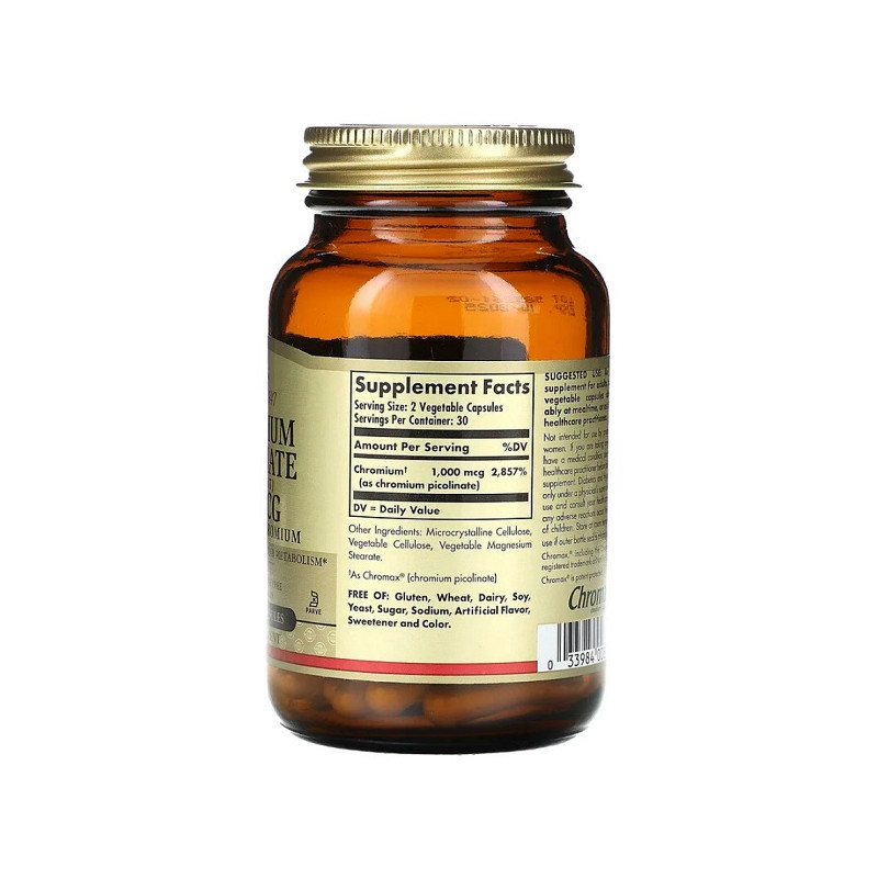 Chromium Picolinate 500мкг Solgar – це зручний щоденний інструмент для підтримки метаболізму та впевненого самопочуття.