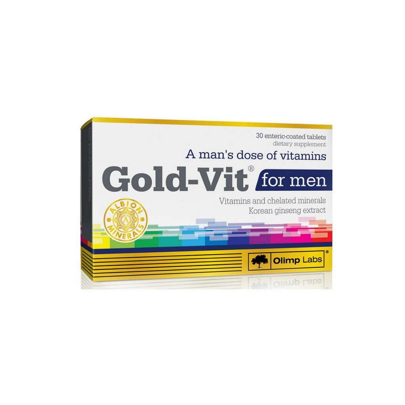 Gold Vit for Men Olimp – комплекс вітамінів і мінералів для чоловіків. Продукт підтримує імунітет та енергетичний обмін. Він допомагає зберігати силу, витривалість та фізичний тонус. Вітаміни та мінерали сприяють нормальній роботі серця та нервової системи. Комплекс підтримує здоров’я простати та репродуктивну функцію. Антиоксиданти допомагають захистити клітини від вільних радикалів. Це зручний засіб для щоденного підтримання чоловічого здоров’я.