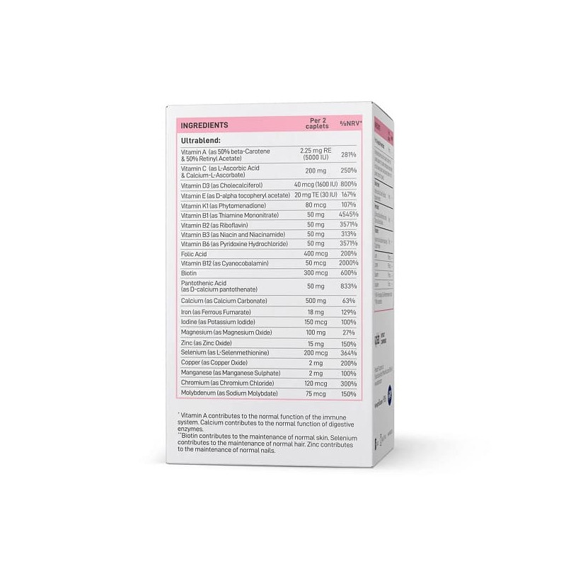Високоякісний вітамінно-мінеральний комплекс, створений спеціально для жінок. Продукт забезпечує організм усім необхідним для підтримки енергії, краси, гормонального балансу та загального самопочуття. До складу входять вітаміни, мінерали та антиоксиданти, які допомагають боротися зі стресом, підтримують шкіру, волосся, нігті й сприяють зміцненню імунітету. Формула ідеально підходить для жінок, які ведуть активний спосіб життя та прагнуть щоденної підтримки здоров’я.