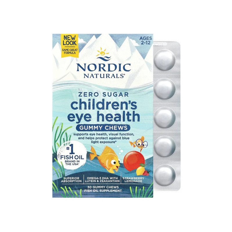 Children's Eye Health Gummies Nordic Naturals — це жувальні вітаміни для підтримки дитячого зору. Вони допомагають зменшити втому очей і покращують адаптацію до світла. Формула з лютеїном, зеаксантином і вітамінами A, C, E забезпечує комплексний захист. Смачні фруктові жувальні таблетки роблять прийом приємним і зручним. Добавка підтримує зір дітей, які часто користуються екранами. Не містить штучних барвників, желатину та ГМО. Це природна турбота про здоров’я очей у кожній жувальній таблетці.