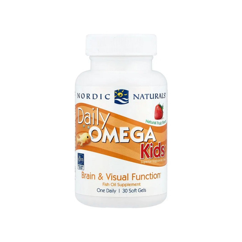 Daily Omega Kids Nordic Naturals — це м’які капсули з омега-3 для дітей. Вони підтримують розвиток мозку та покращують пам’ять. Продукт допомагає підтримувати серцево-судинну систему та нормальний імунітет. Капсули мають приємний фруктовий смак і легко приймаються дітьми. Добавка містить очищену риб’ячу олію без токсинів і важких металів. Не містить ГМО, глютену та штучних барвників. Це щоденна підтримка здоров’я вашої дитини у зручній формі.