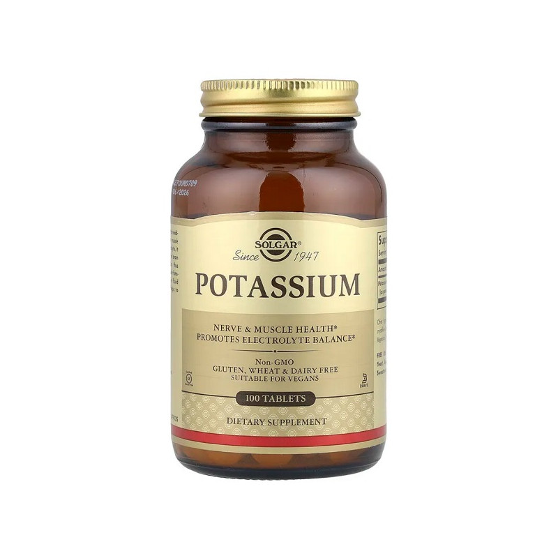 Potassium Solgar – це ефективна мінеральна добавка для підтримки балансу електролітів, стабільної роботи серця та нервової системи, створена за високими стандартами якості Solgar.
