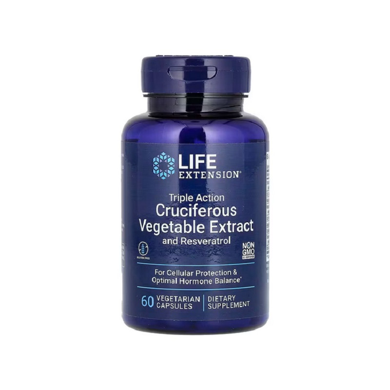 Triple Action Cruciferous Vegetable Extract and Resveratrol Life Extension — це ідеальне поєднання природних антиоксидантів та фітоелементів для захисту клітин, підтримки гормональної рівноваги та уповільнення процесів старіння.