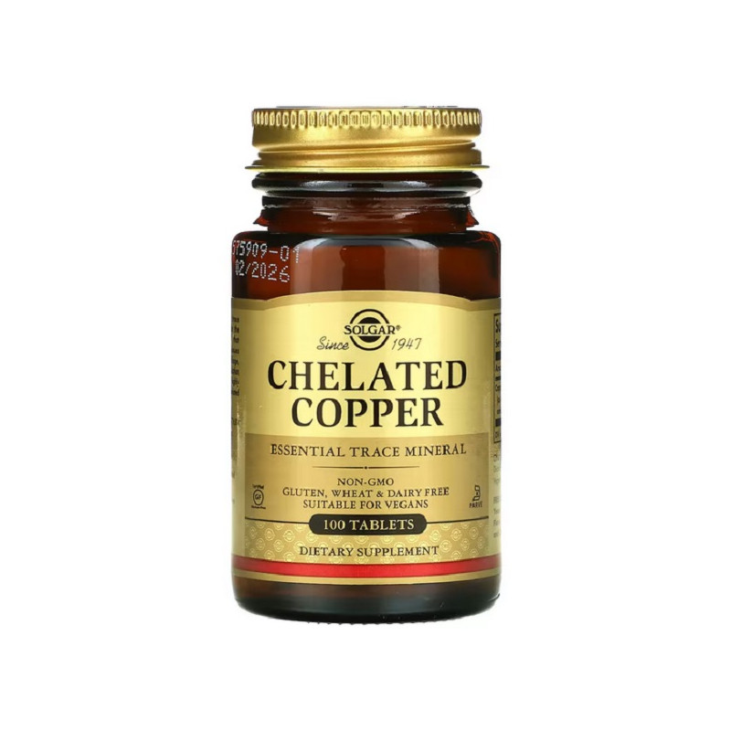 Chelated Copper Solgar — це ефективна формула, що забезпечує організм високо засвоюваною міддю для підтримки здоров’я шкіри, волосся, імунної системи та клітинного захисту.
