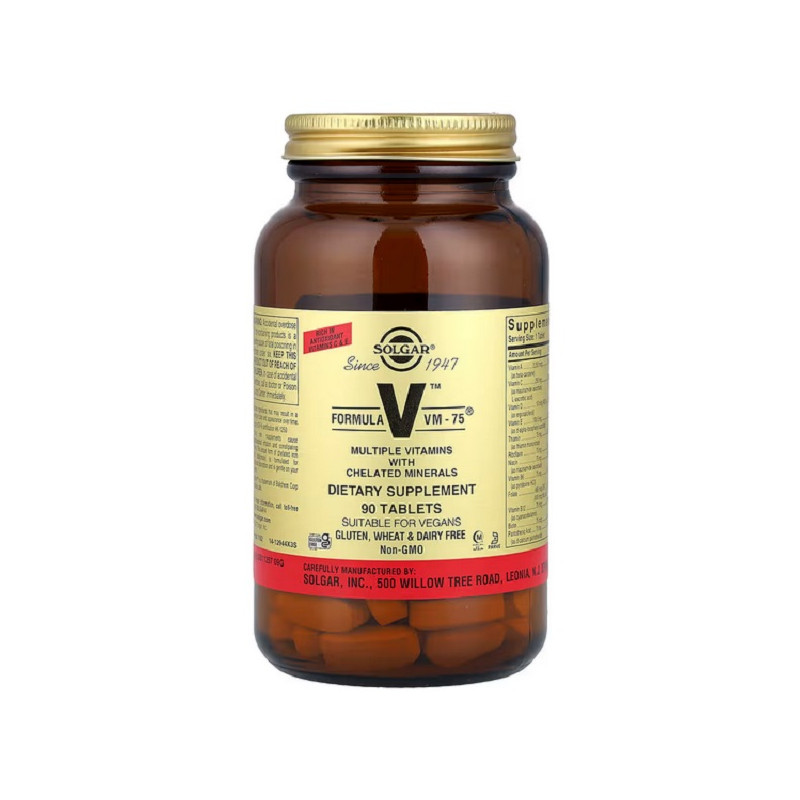 Formula VM-75 Solgar — це збалансований мультивітамінно-мінеральний комплекс для підтримки енергії, імунітету та здоров’я. До складу входять вітаміни, мінерали, антиоксиданти й амінокислоти, що забезпечують повноцінне живлення організму. Допомагає боротися з втомою, підтримує нервову систему та покращує самопочуття. Ідеальний для людей із насиченим темпом життя. Не містить глютену, лактози та штучних добавок.