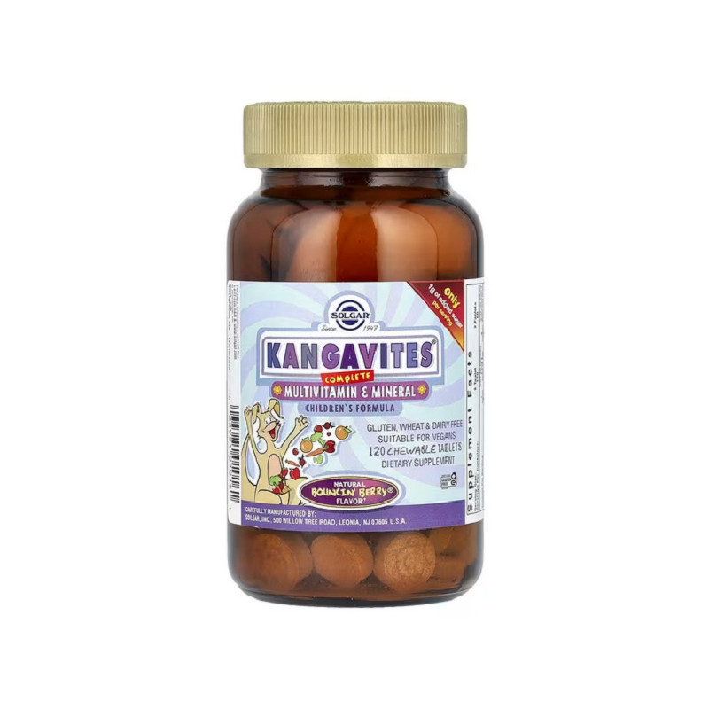 Високоякісна добавка, створена для підтримки загального здоров’я дітей та підлітків, забезпечуючи організм необхідними вітамінами, мінералами та антиоксидантами. KANGAVITE BERRY від Solgar містить збалансований комплекс поживних речовин у вигляді жувальних таблеток із приємним ягідним смаком, що полегшує прийом продукту для дітей. Препарат підтримує імунну систему, сприяє нормальному росту та розвитку, покращує енергетичний обмін і когнітивні функції. Вітаміни групи B і вітамін C допомагають підтримувати активність, концентрацію та фізичну витривалість. Мінерали, включно з залізом і цинком, забезпечують оптимальне живлення організму, підтримуючи здоров’я кісток, шкіри, волосся та нігтів. Регулярне застосування продукту допомагає підтримувати природний захист організму і сприяє гармонійному розвитку дітей.
