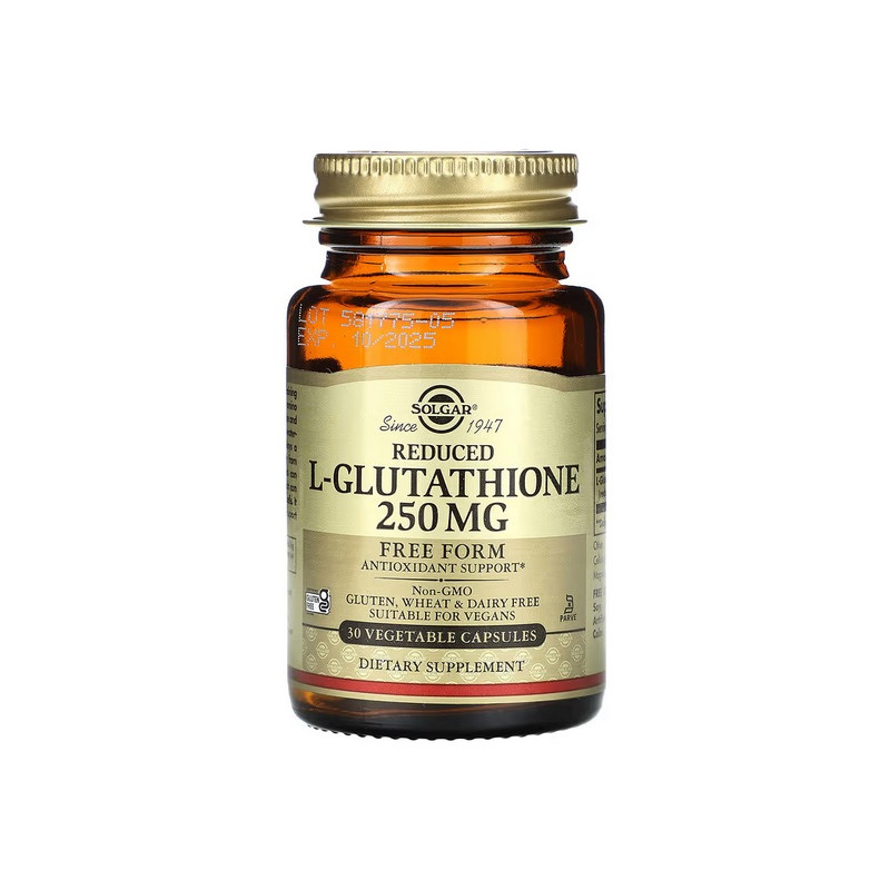 Високоякісна добавка, створена для потужного антиоксидантного захисту, підтримки детоксикаційних процесів та зміцнення імунної системи. L-Glutathione від Solgar містить природний трипептид, який синтезується з амінокислот — глутаміну, цистеїну та гліцину, і відіграє ключову роль у нейтралізації вільних радикалів та виведенні токсинів з організму. Глутатіон сприяє очищенню печінки, підтримує здоров’я клітин і запобігає їх передчасному старінню. Він також допомагає зберігати молодість шкіри, підвищує її еластичність і сприяє рівному тону обличчя. Цей продукт підходить для людей, які проживають у забрудненому середовищі, зазнають стресу або мають підвищене навантаження на організм. Solgar гарантує чистоту сировини, високу якість виробництва та повну відсутність штучних добавок.