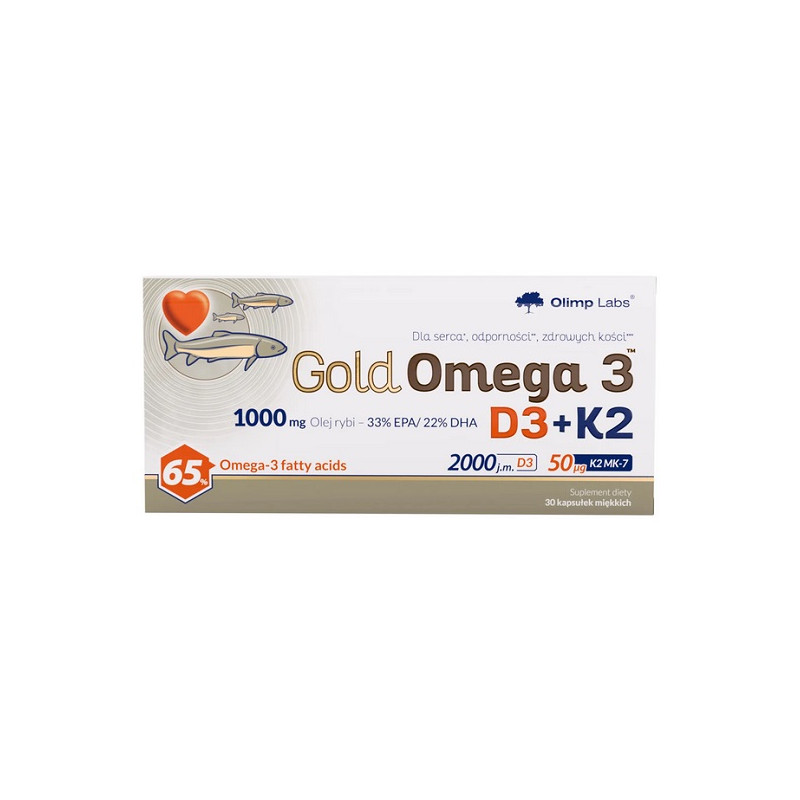 Olimp Gold Omega-3 D3+K2 – це комплекс для підтримки серця, кісток та імунної системи, рекомендований людям, які дбають про здоров’я та активний спосіб життя.