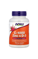 C-1000 Zinc & D-3 Now Foods — комплекс з вітаміном C, цинком і D3. Підтримує імунну систему організму. Сприяє антиоксидантному захисту. Допомагає зміцнювати кістки. Підтримує здоров’я шкіри. Підходить для щоденного застосування. Упаковка містить 100 вег капсул.