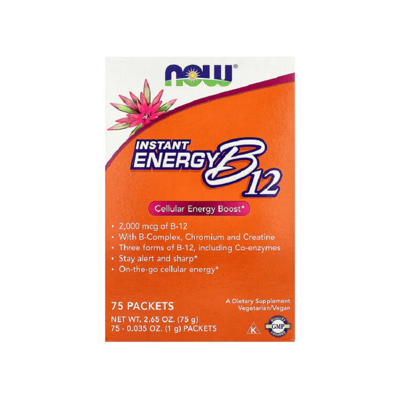 Instant Energy B-12 NOW Foods — порошок для приготування напою з вітаміном B12. Підтримує швидку вироблення енергії. Сприяє зменшенню втоми та стресу. Підтримує нормальне функціонування нервової системи. Допомагає зберігати концентрацію та активність. Зручно брати з собою в дорогу чи на роботу. Упаковка містить 75 пакетів.