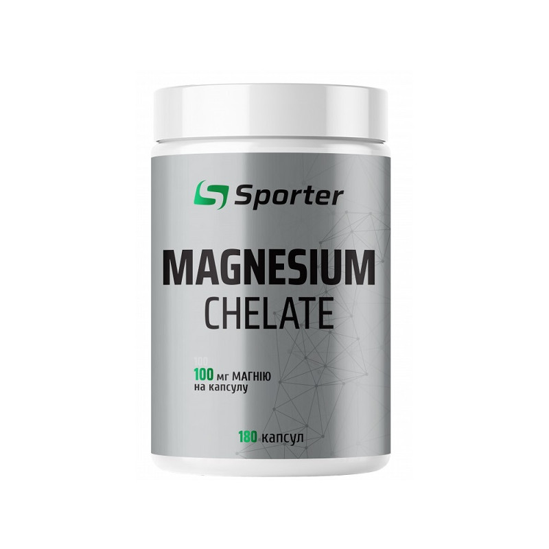 Magnesium Chelate Sporter - магній у добре засвоюваній хелатній формі. Підходить для щоденного використання. Допомагає боротися зі стресом. Сприяє нормальній роботі м’язів. Підтримує сон і відновлення. Зручний формат капсул. Оптимальний для активних людей.