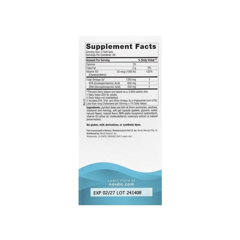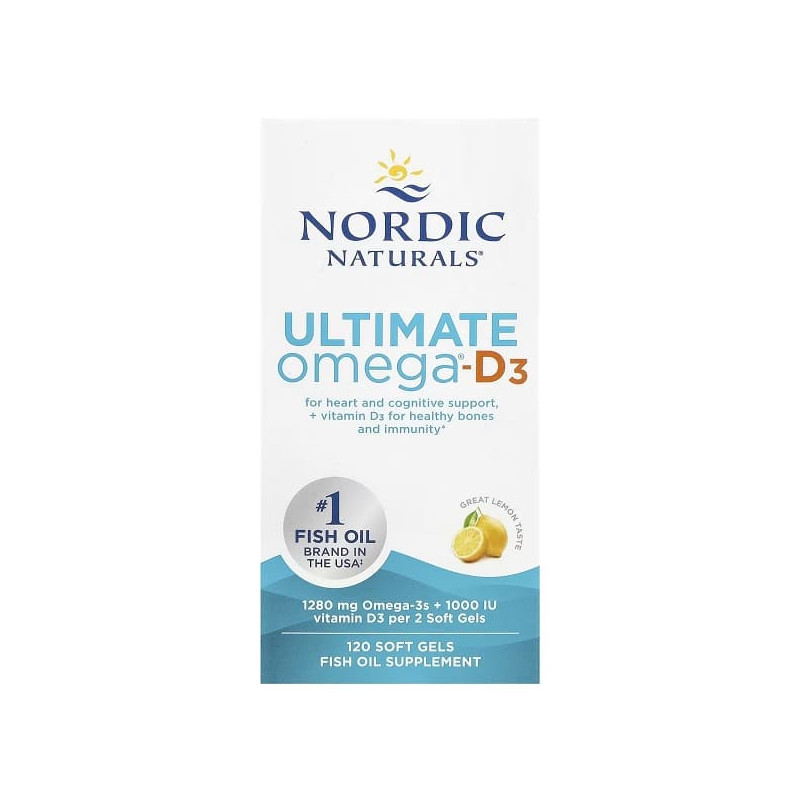 Ultimate Omega-D3 Nordic Naturals – це унікальне поєднання омега-3 і вітаміну D3 у капсулах. Продукт допомагає підтримати здоровий баланс у щоденному житті. Він сприяє підвищенню витривалості й швидшому відновленню після фізичних навантажень. Засіб стане чудовим вибором для людей, які хочуть зберегти активність і гарне самопочуття. Формула створена для тих, хто цінує якість і натуральність. Капсули мають приємний лимонний присмак і легко засвоюються. Це простий і ефективний спосіб турботи про організм.