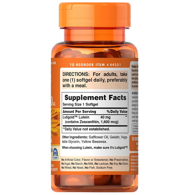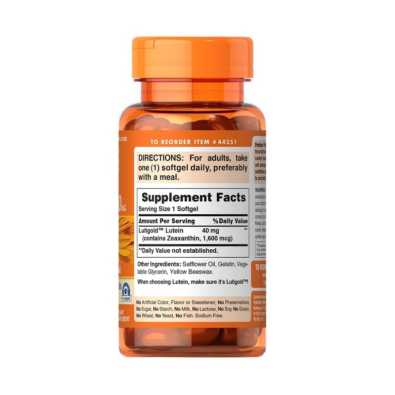 Lutein 40mg with Zeaxanthin від PuritansPride-це унікальна комбінація незамінних для здоровя і відмінного самопочуття речовин-лютеїну і зеаксантину.