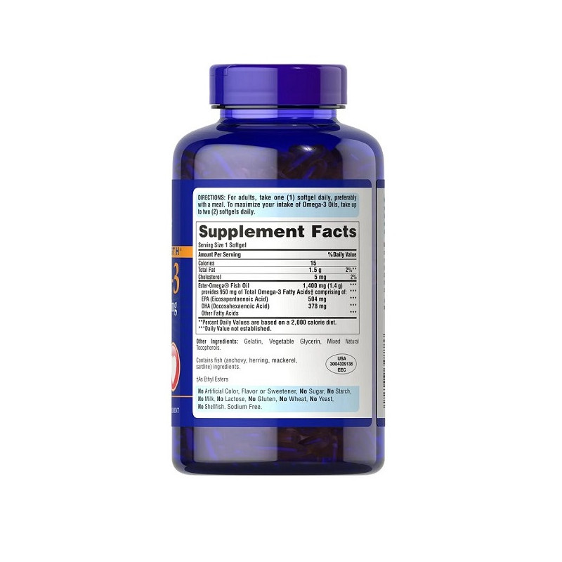 Омега-3 Fish Oil 1400 мг (950 мг ActiveOmega-3)-це джерело поліненасичених жирних кислот Omega-3, регулярний прийом яких знижує ймовірність розвитку серцево-судинних хвороб, допомагає в боротьбі із зайвою вагою, покращує мозкову активність.