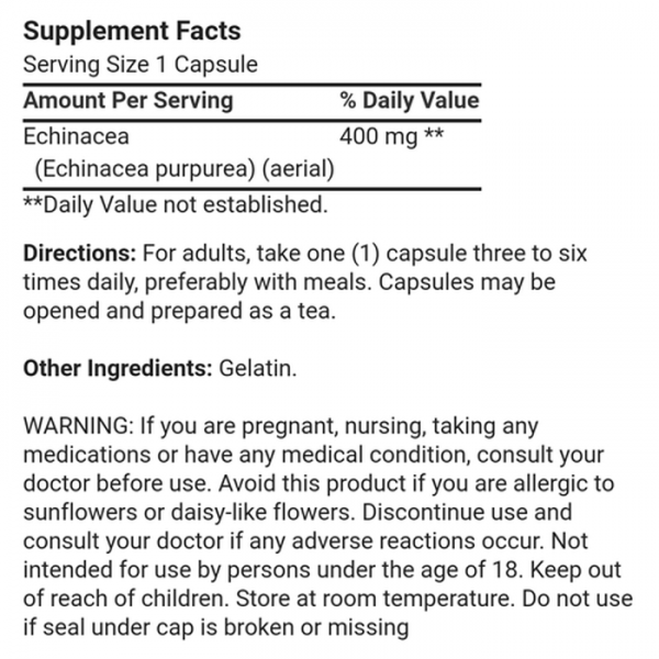 Добавка содержит 400 мг экстракта эхинацеи в каждой капсуле и станет отличным дополнением рациона активных людей и спортсменов.