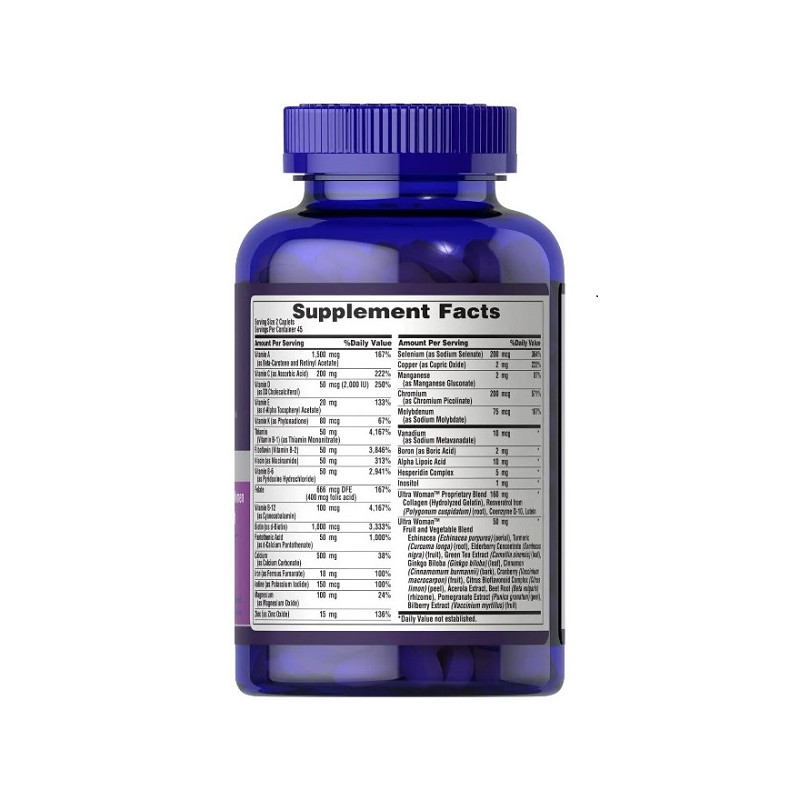 Це високоякісний вітамінно-мінеральний комплекс для жінок, що містить всі необхідні мікроелементи для краси і жіночого здоровя в двох таблетках.