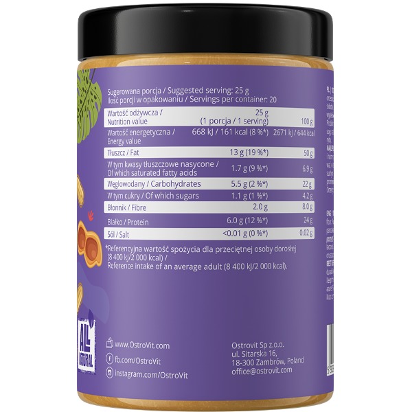 100% Peanut Powder OstroVit - це більше, ніж тільки арахісовий порошок. Це джерело смачних смаків, корисних живильних речовин та невичерпної енергії для вашого активного та здорового життя. Додайте його до свого раціону, і ви отримаєте не лише насолоду від смаку, а й справжню порцію здоров'я для свого організму.