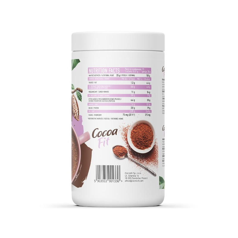 Cocoa Fit OstroVit – це ідеальний вибір для тих, хто цінує натуральні та корисні продукти. З його допомогою ви зможете не лише насолодитися смаком справжнього какао, але й отримати безліч корисних речовин, таких як магній, які підтримають ваше здоров'я та покращать загальне самопочуття. Спробуйте Cocoa Fit OstroVit і відчуйте різницю!